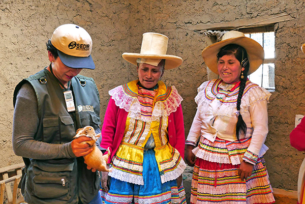 No debemos olvidar el valor de la cultura en las intervenciones en las zonas andinas. Si bien el interés ha crecido y la participación de las mujeres ha aumentado, el idioma es una barrera que podemos convertir en oportunidad. Específicamente en ésta zona de nuestra intervención, la mayoría de mujeres habla quechua, y eso ha generado la necesidad de que los facilitadores de las enseñanzas deben conocer y hablar en quechua.Este factor ha permitido acercar los conocimientos y generar confianza. Esta innovación ha generado una mayor asistencia: las mujeres saben que la capacitación será en su idioma, se pasan la voz y eso les permite aprender. Pero además, significa una revaloración del idioma nativo. “En una encuesta anónima aplicada a las mujeres, preguntamos, qué temas son los que más les interesan, y la respuesta fue unánime respecto a la crianza de cuyes; incluso conocer técnicas de aplicación para combatir problemas sanitarios; y eso es lo que vamos a hacer este año. Vamos a implementar programas de enseñanza para la aplicación de insumos, dosificaciones, para que conozcan cómo aplicar inyecciones. Impulsaremos esta actividad porque el mercado para la carne de cuy cada vez es más grande. Creemos que el mercado va a demandar mayor cantidad de cuyes; trabajaremos también el aspecto de articulación de mercados. Esa será una actividad importante a desarrollar, y lo hacemos con mucho gusto porque buscamos condiciones de equidad y mayor participación de la mujer en el desarrollo de la economía local y por ende mejorar las condiciones de vida de la familia andina”, manifiesta el Ing. Juan Cerna Espinoza, Director Ejecutivo de SEDIR.