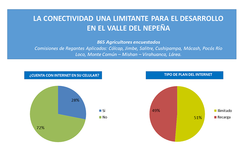 El Servicio para el Desarrollo Integral Rural (SEDIR), con la finalidad de establecer una línea base y un monitoreo más frecuente respecto a los cambios en el desarrollo dentro de su ámbito de acción como es el valle del Nepeña, realizó una encuesta a 865 Agricultores pertenecientes a las Comisiones de Regantes: Cólcap, Jimbe, Salitre, Cushipampa, Mácash, Pocós, Monte Común- Mishán - Virahuanca, Lárea; sectores que se encuentran ubicados por debajo de 2500 m.s.n.m.
