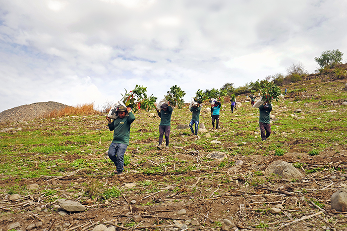SEDIR realizó la instalación de 1600 plantones de palto en un campo del distrito de Jimbe en donde los colaboradores, con mucha destreza y esfuerzo físico, arrojaban desde lo alto de sus hombros la materia orgánica que transportaban en sacos de 50 kilos. Los colaboradores tuvieron que subir y bajar, durante tres días, la ladera del cerro para realizar el trazado del campo, los hoyos para la colocación de plantones y para la instalación de las plantas con el uso de compost.