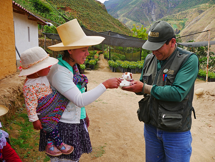 “Aquí en la zona (subcuenca del Río Loco) todas las familias hablan quechua y hablarles en su idioma genera mayor dinámica y confianza en las capacitaciones. Incluso hacemos bromas para quitar la timidez", explicó el responsable en la zona sierra de SEDIR, Liberato Torre Albino. SEDIR tiene planeado capacitar a más de 500 mujeres durante los siguientes 3 años para fortalecer su emprendimiento de crianza de cuyes.