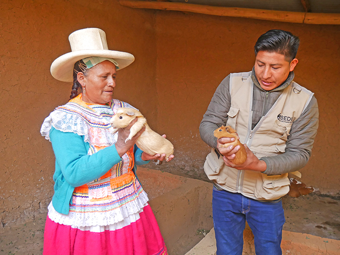SEDIR capacita a 400 mujeres de la subcuenca del río Loco en temas como construcción de pozas o jaulas, aplicación de medicamentos o las medidas de bioseguridad que deben tener en el galpón, uso de cal para desinfección, para prevenir enfermedades. Todas ellas ya conocen, por ejemplo, de reconocimiento de sexo de los cuyes, destete y el tiempo adecuado del empadre. La población nacional de cuyes supera los 20 millones de ejemplares y casi la totalidad se ubica en la sierra peruana.